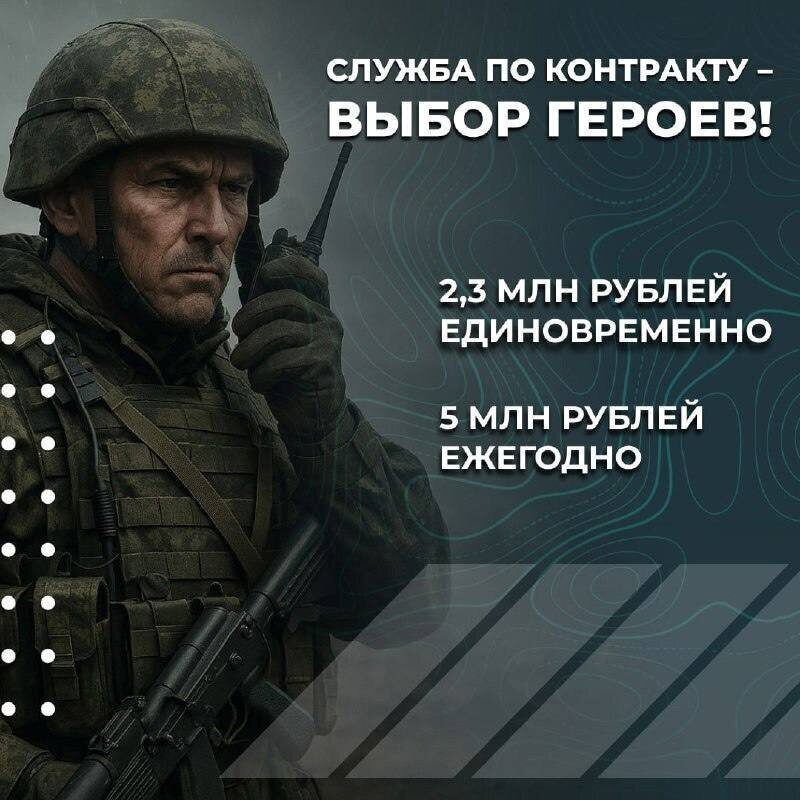 Ямальцев приглашают на военную службу по контракту. ✅Лучшие условия в стране ✅Годовой доход 5 000 000 рублей. ✅Единовременная выплата 2 300 000 рублей при заключении контракта. ✅Льготы и гарантии для всей семьи. Подробности на сайте: contract89.ru