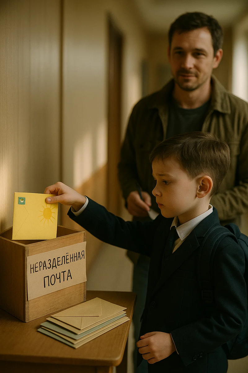 Следующие дни класс жил под шорох тайной переписки. Марина Борисовна поставила на стол ярко-синий лоток: «Почта родителей», падали туда конверты красные, зелёные, в горошек. Некоторые одноклассники заразились идеей: кто-то писал бабушке, кто-то папе-дальнобойщику.
