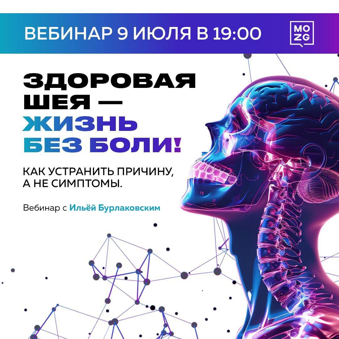 9 ИЮЛЯ мы проведём закрытый вебинар: «Здоровая шея — жизнь без боли. Как устранить причину, а не симптомы»
