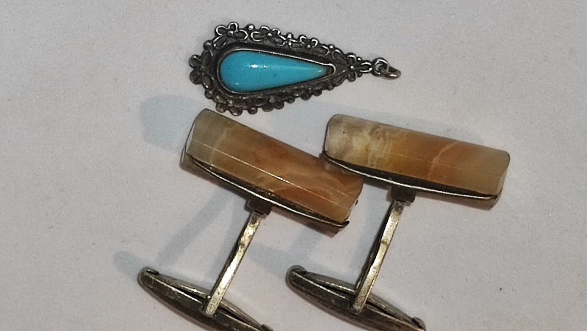 Запонки за 700 (вставка - шайтанский переливт), 10 грамм общий вес. Две банки пива по 50 (Франция). Ингалятор (не комплект) - 150 (немецкий, 60-е года). Подвеска от серьги (серебро) - 150. Запчасть, ага. 1,5 грамма. :0) На рынке жарко было, и встал рано... Походил 1,5 часика и вымотался. Уехал на электричке 10-00. :0) Видел что?... Чайные ложечки мельхиоровые. МЮЗ. Просили 100 р /шт. Но... Мне 6 шт. не надо... Серебряное колечко (СССР) за 600... Но у меня похожее есть. Бусы малахитовые, Африка. 1000. Невзрачные. Современные, на тросике. Книжка по технике ювелира. 1962 г., четвертое издание. 300 р. хотели. Недорогие симпатичные рюмочки по 50. У меня их уже много - воздержался. Чашечка - старые Вербилки (конец 50-х) - но битая... Всё интересное на Мосвинтаж увезли? :0))) В целом - отдохнул и пивка попил... 2СЮ - 1972, Свердловск, 875 проба Ингалятор Махольда (аромаингалятор) представляет собой устройство из стекла для проведения лечебно профилактических процедур метод