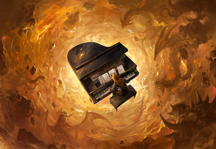 - ХВАТИТ СЛОВ! ПОКАЖИ! – прорычал великий дракон, обдав меня горячим дыханием и в тот же момент ветер стих, а в нескольких шагах от меня возник рояль. Точно такой же как тот на котором меня учила играть мама. Даже крышка у него была точно также испорчена. Какой-то оболтус нацарапал на ней показывающего язык фавноса с непомерно длинными рожками.