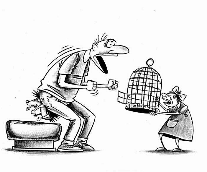 Надо сказать, что у карикатуриста Сергея Корсуна довольно много сюжетов про зверей. Чаще всего они подражают людям, передразнивают их, приспосабливаются, мечтают о вкусняшках, радуются, когда их главным врагам по жизни не везёт и т.п.. Звериное семейство всегда такое. Любят поспать, поесть и победокурить. Что ж, давайте глянем большой сборник о лохматых и кусачих. Приятного чтения и настроения) Давайте начнём с будней домашних животных. Про котиков на канале ранее уже был целый сборник. Так что перейдём сразу к псам и мелким питомцам. Главный ужас в жизни ежа - вдруг наступят или сядут. А для змеи - что её будут тянуть или мять хулиганистые детишки. Собака - друг человека. Некоторые заводят их не чтобы играть, а для конкретных, практичных целей, дом охранять и на охоте помогать. С мышами и крысами посложнее. Довольно умные по сравнению с другими грызунами. А ещё изобрететательные и всеядные. И вот так, ненавязчиво показал художник - юморист безумное желание людей запасать. Почему в ви