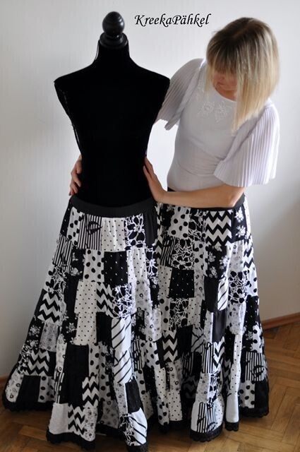 🔹 Пэчворк-юбка – сочетайте с простой футболкой, чтобы не перегружать образ.