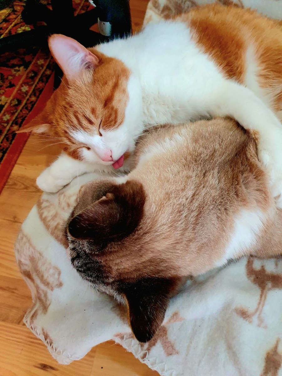Вылизывал брата и уснул 😌 Главное - продолжать обниматься, так уютнее)