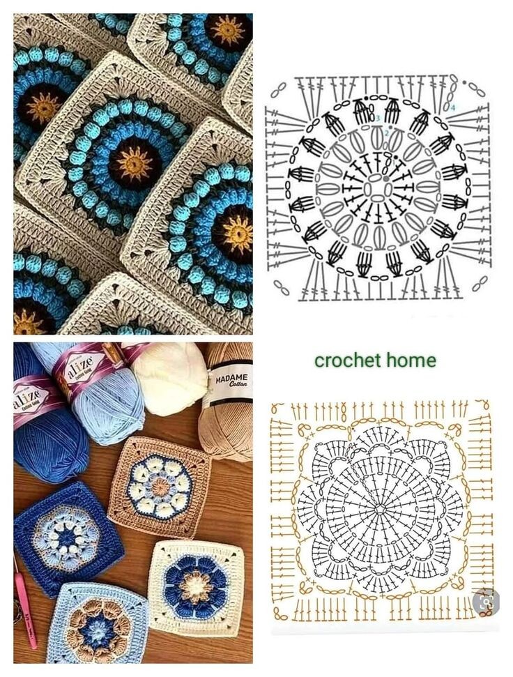 Бабушкин квадрат — это элемент вязания крючком, квадратный мотив, связанный по кругу от центра к краям. Состоит из повторяющихся узоров, которые могут быть выполнены в различных цветах и текстурах.