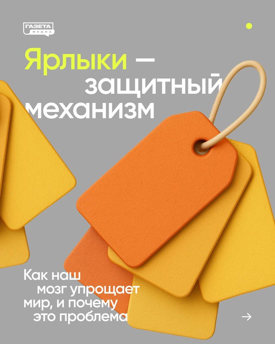 «Зумер», «скуф», «пикми»: почему мы так любим ярлыки «Типичный бумер», «истеричка», «неудачник» — наш мозг обожает такие короткие фразы, ведь они экономят время и силы. Но мы платим за это высокую цену: ярлыки подменяют реальность, превращая живых людей в карикатуры. А если попробовать хотя бы день прожить без этих ментальных костылей? В карточках разбираемся, почему мы так зависимы от ярлыков, и как эта привычка меняет общество. А вы часто ловите себя на том, что мыслите ярлыками? #газета_код_общества #обсуждаем