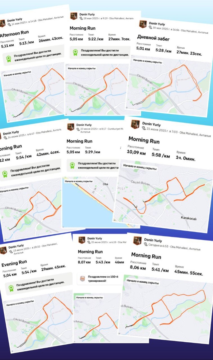 Но! Процесс то идёт и я уже 9 раз выходил и нацелился на промежуточный результат - Полумарафон.