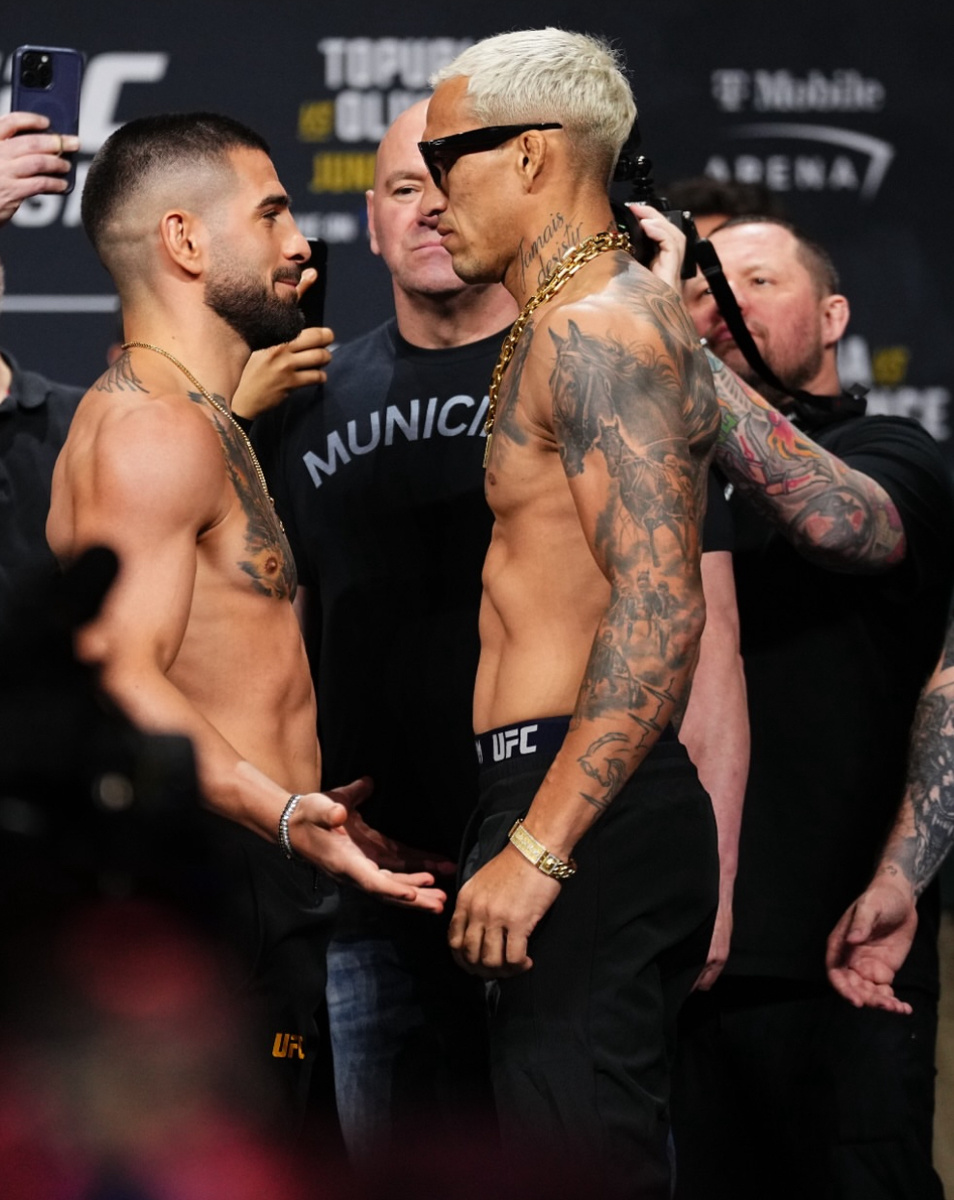 ## Оливейра vs. Топурия: Битва титанов за трон полулегкого веса UFC! В центре внимания – захватывающий поединок, который обещает взорвать мир смешанных единоборств! 29 июня на турнире UFC 317 сойдутся два выдающихся бойца полулегкого веса: бывший чемпион Чарльз Оливейра и грозный претендент Илия Топурия. Чарльз "Do Bronx" Оливейра: Легенда, вернувшаяся в погоню за величием. Бразильский мастер джиу-джитсу, обладатель рекордов UFC по количеству сабмишенов и побед нокаутом. Оливейра, известный своим зрелищным стилем и неукротимым характером, стремится вернуть себе чемпионский пояс, потерянный в бою с Исламом Махачевым. Его невероятная стойкость, смертоносные удары и мастерство в партере делают его одним из самых опасных бойцов в истории UFC. Илия "El Matador" Топурия: Неудержимая сила, идущая к вершине. Молодой, амбициозный боец испанско-грузинского происхождения, стремительно ворвавшийся в элиту полулегкого веса. Обладатель нокаутирующей мощи, отточенной борьбы и хладнокровия в октаг