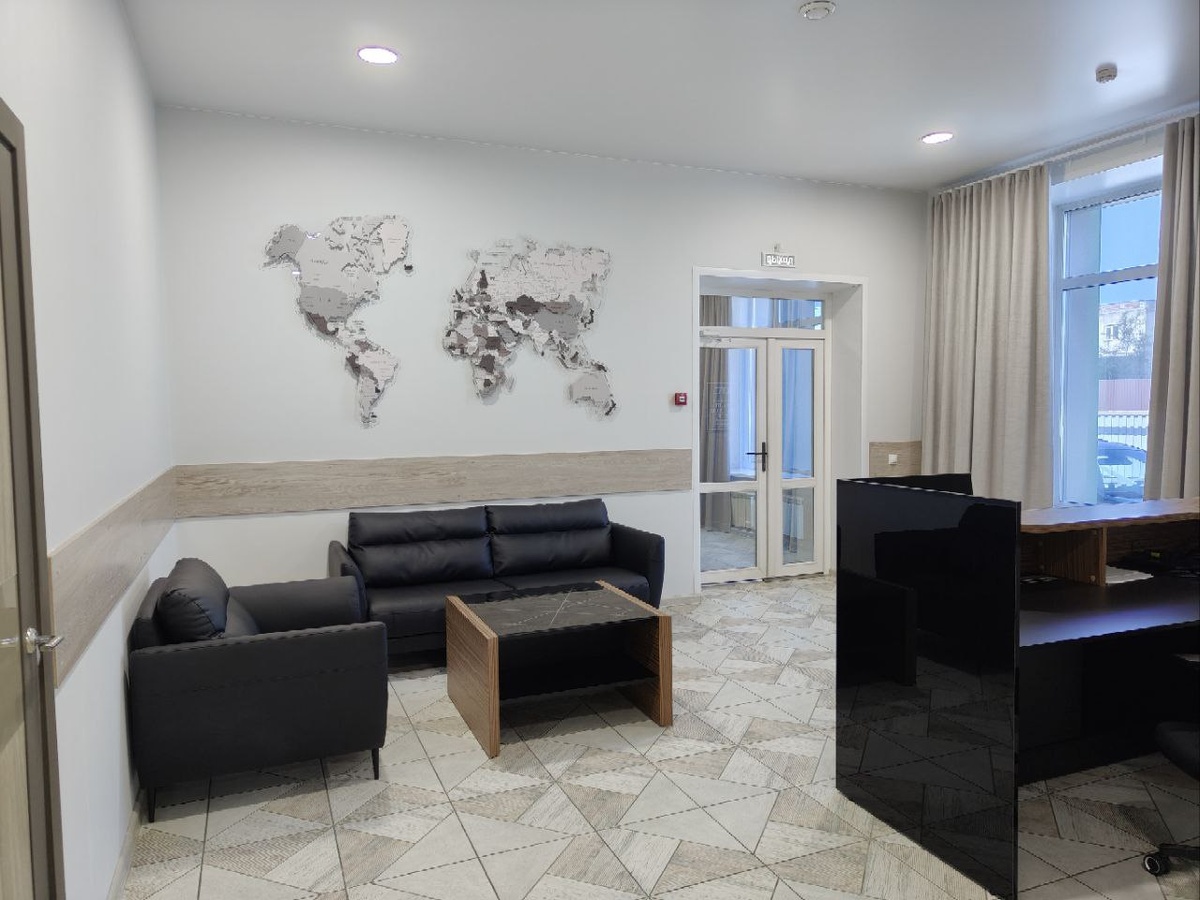 Украсить входную группу офиса - легко! Подобрать цветовую палитру под интерьер, учесть размер и задачу. На фото карта мира на оргстекле "Чукотка" 230×130