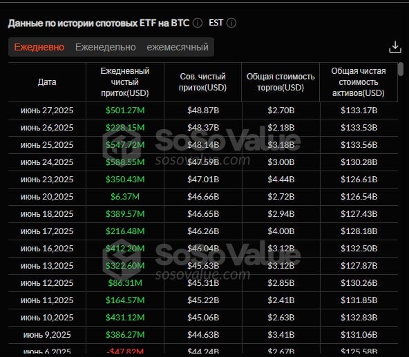 πΈ27 ΠΈΡΠ½Ρ ΡΠΏΠΎΡΠΎΠ²ΡΠ΅ Π±ΠΈΡΠΊΠΎΠΈΠ½-ETF Π·Π°ΡΠΈΠΊΡΠΈΡΠΎΠ²Π°Π»ΠΈ ΠΎΠ±ΡΠΈΠΉ ΡΠΈΡΡΡΠΉ ΠΏΡΠΈΡΠΎΠΊ Π² ΡΠ°Π·ΠΌΠ΅ΡΠ΅ $501 ΠΌΠ»Π½, ΡΡΠΎ ΡΡΠ°Π»ΠΎ 14 Π΄Π½Π΅ΠΌ ΠΏΡΠΈΡΠΎΠΊΠ° ΠΏΠΎΠ΄ΡΡΠ΄