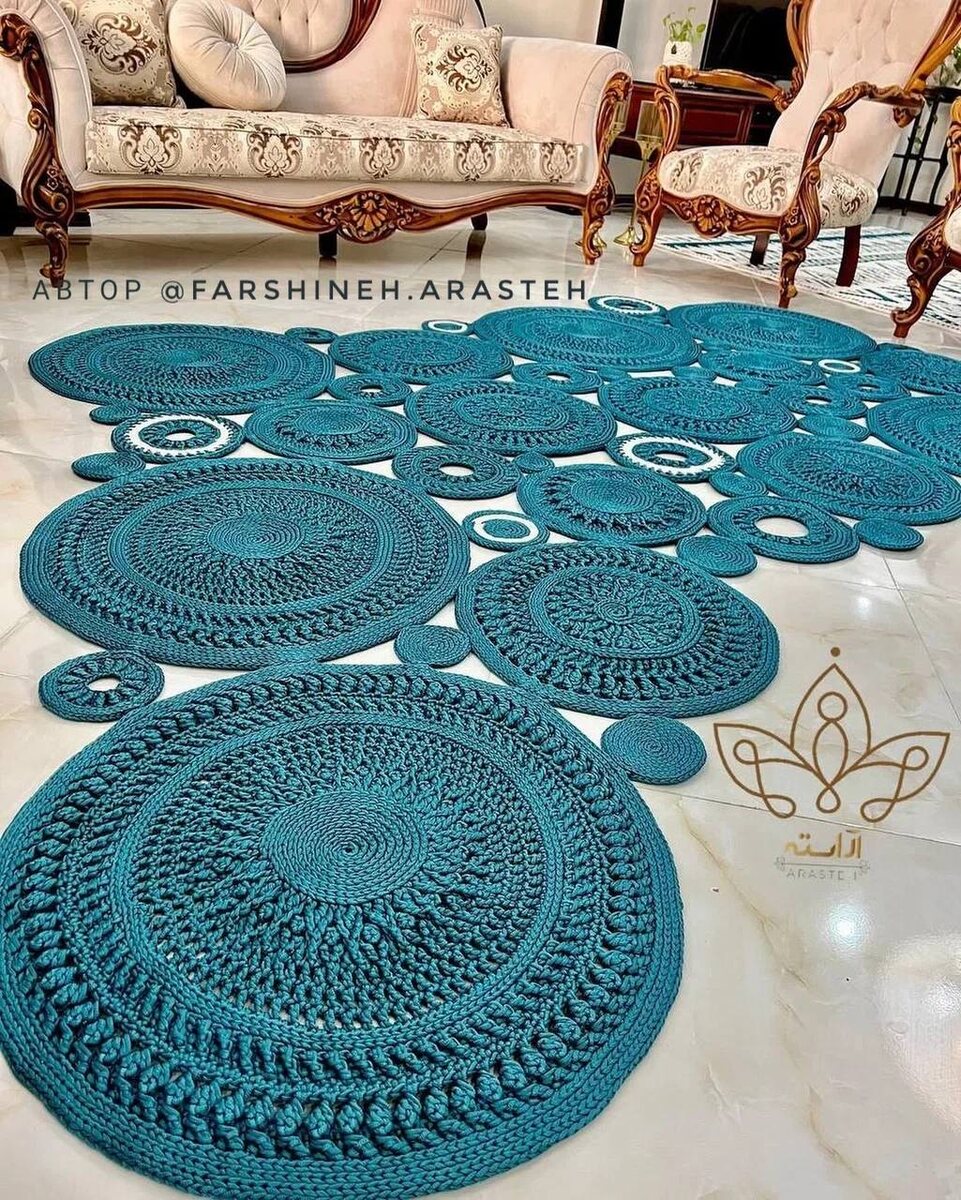 У меня к вам 2 вопроса: 1. Как бы вы назвали этот цвет? 2. Какой ковер вам понравился в нем больше всего? 🙂 Все изделия на фото связаны вами по моим мастер-классам