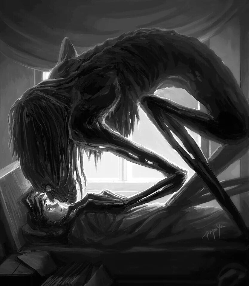 Я лежал в постели, пытаясь заснуть. Вдруг я почувствовал чье-то дыхание на своей шее. Я замер, боясь пошевелиться. Дыхание становилось все горячее и тяжелее. Я медленно повернул голову и увидел, что прямо за мной стоит темная фигура. Она наклонилась ко мне и прошептала: "Я ждал тебя." И я понял, что это был конец.