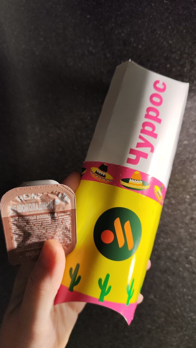 🟡Чуррос с шоколадным соусом. Я впервые пробую чуррос, поэтому сравнить не с чем, каким должен быть - без понятия. В упаковке 3 палочки, достаточно длинные. Не хрупкие, потому что из заварного теста и достаточно плотные. Соус очень напомнил шоколадный сироп или топинг🧋 Вроде бы шоколадный, но это вам не растопленный шоколад. Палочки мне показались пресноватыми, поэтому в сочетании с шоколадным соусом получается классная вкусняшка🐾