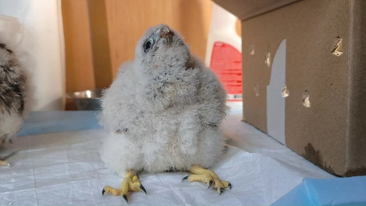 Маленькие соколиные дети растут в коробочных "яслях". Некоторые из них пока даже стоять не умеют - еще слабенькие лапки не могут поднять тяжелую детскую попу. А самым болявым приходится не только усиленно питаться, но и терпеть лечебные манипуляции.