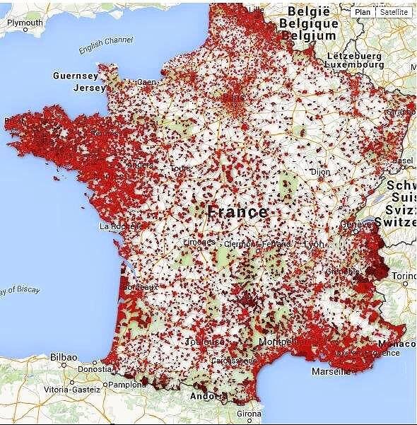 Просто интересное. Плотность кафе и баров во Франции в 2020 году.