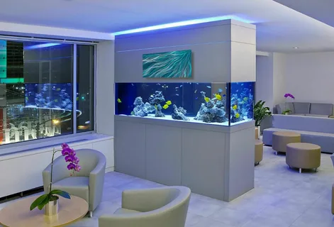 Выбирайте подходящие решения для улучшения внешнего вида вашего жилища. Вот один яркий пример: элегантный современный аквариум с чёткими линиями и прозрачностью стекла создаёт лёгкость и воздушность пространства. Добавьте сюда разнообразную флору и фауну, и получится гармоничный уголок природы. Причина №2: Психологический комфорт и антистресс