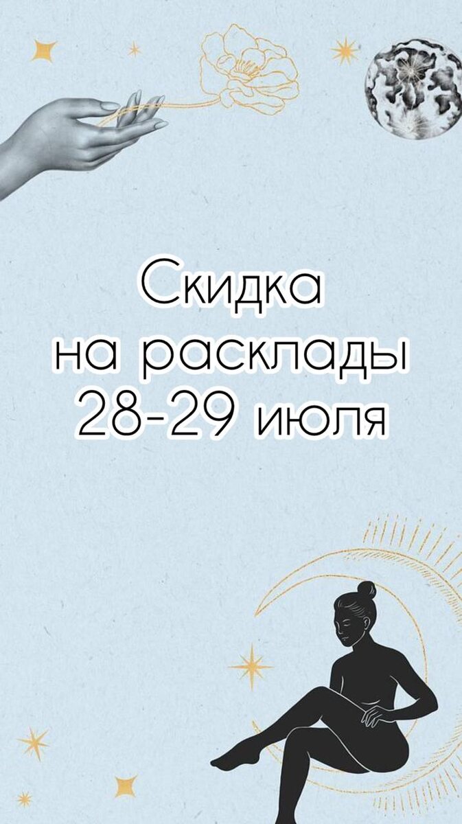 Доброе утро, мои самые любознательные и волшебные! 🕯️🕯️🕯️🕯️🕯️🕯️🕯️ Вы, мои двигатели прогресса и генераторы позитива! Вчера билась над расшифровкой интерактива до победного! 💪Кто пропустил этот мозговой штурм – срочно нагоняйте! Там такие откровения, что карты в шоке! ⭐️🪄🔮 🚩🚩🚩🚩 А теперь важное объявление! 30 июня я беру выходной! 😱 Да-да, вы не ослышались! Мои колоды таро тоже нуждаются в перезагрузке! 🔮🔮🔮🔮 Из-за этого мои дорогие, я вынуждена была немного передвинуть ваши консультации. Простите-извините! 🙏 Но не спешите забрасывать меня гневными смайликами! 😇В качестве компенсации за этот дерзкий поступок я объявляю… СКИДКИ! 🎉 ⚠️Только 28-29 июля! Готовьте свои самые сокровенные вопросы и записывайтесь на сеанс магии! 🔮 ✅ Полный расклад – всего 700 рублей! ✅ Расклад на год/полгода – 1000 рублей! Успейте забронировать свой кусочек пророчества, пока я не опомнилась! 😜Пишите в личку, количество мест ограничено моей скромной вместимостью! 😅 Желаю всем феер