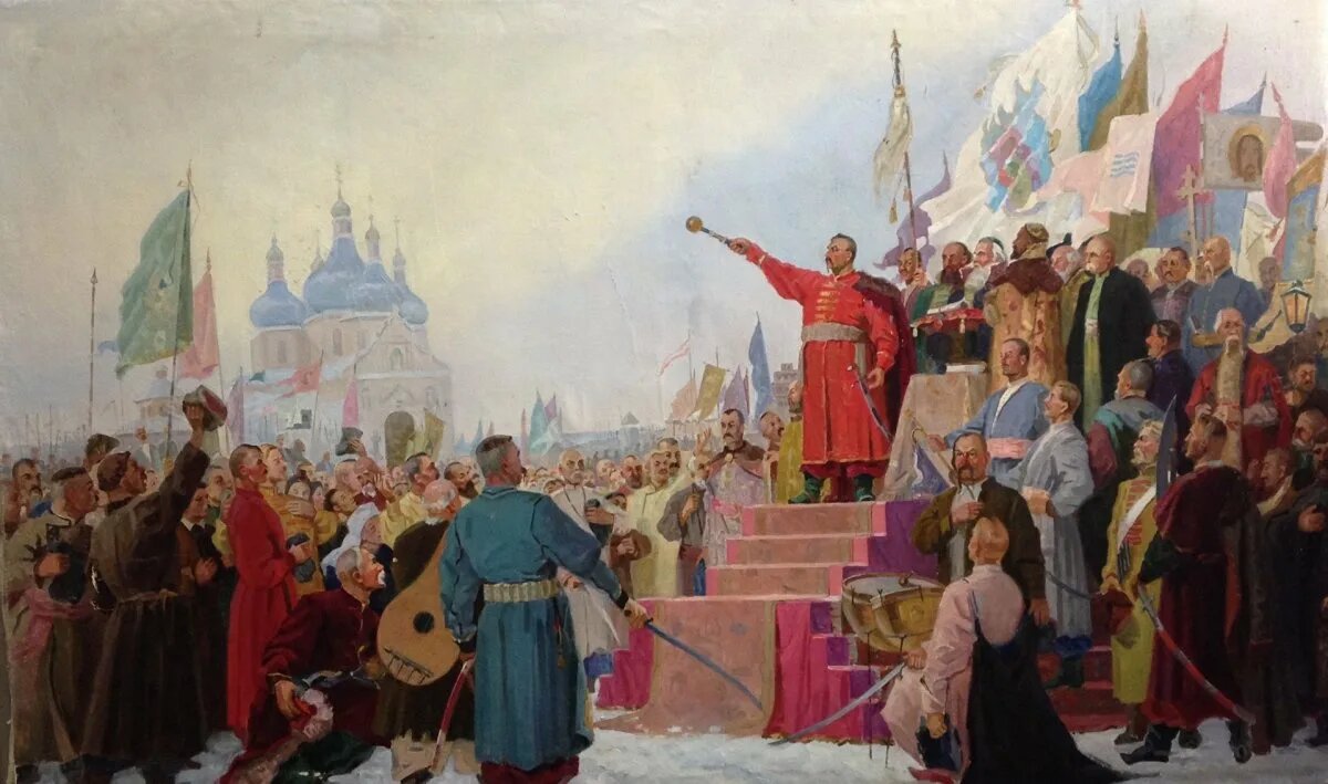 Еще в начале своего предприятия в 1648 году казачий вождь рассылал «универсалы» с призывом к народу встать с ним плечом к плечу, чтобы добыть желанную волю и возможность жить свободно и независимо. Отмечаемая еще Львом Толстым «народная война» стала интересной темой и среди его последователей.