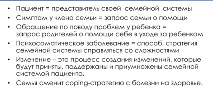Системный семейный подход: взгляд на семью как систему Основные принципы: Пример: В семье, где открытое выражение эмоций считается неприемлемым, ребенок может "выражать" свои переживания через физические симптомы. Методы системной семейной терапии в работе с психосоматическими семьями Пример: В семье с ребенком, страдающим от энуреза, терапевт может предложить родителям "награждать" ребенка за мокрые ночи, чтобы снизить тревогу и напряжение вокруг этой проблемы. Этапы системной семейной терапии Преимущества системного подхода в работе с психосоматическими семьями Системный семейный подход является эффективным инструментом в работе с психосоматическими семьями с детьми. Он позволяет увидеть проблему в контексте семейной динамики, вовлечь всех членов семьи в процесс терапии и добиться устойчивых изменений. Рекомендации: https://vk.com/video-195548667_456240123[video]https://vk.com/video-195548667_456240123[/video] Если Ваша семья и ваш ребенок столкнулись с данной проблемой, то обращайте