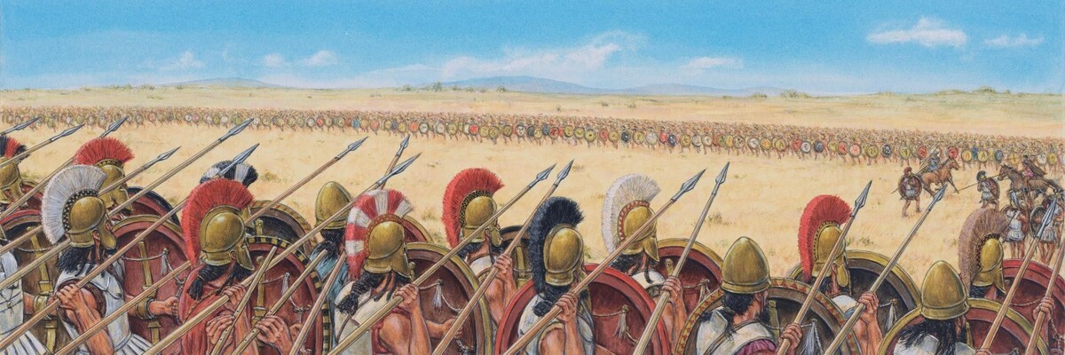 Гоплиты — пехота с копьями, обладающая базовыми свойствами: дисциплиной, атакой в строю и способностью к маскировке в лесу, а элитные подразделения дополнительно имеют свойства «образец для подражания» и «мастера отражать натиск»; их ключевое умение — формирование фаланги, которое необходимо активировать заранее; главная роль гоплитов заключается в обороне первой линии, где они принимают на себя пехотные и кавалерийские атаки противника, удерживают позиции и привлекают вражеский огонь; их сильные стороны — высокая защита, наличие прочного щита-гоплона и крепкий боевой дух, однако они имеют существенные слабости: уязвимость с флангов и тыла, а также низкую скорость передвижения; тактически гоплиты могут как удерживать позиции, так и перебрасываться на критические участки боя, при этом они особенно эффективны в роли противокавалерийской защиты флангов.