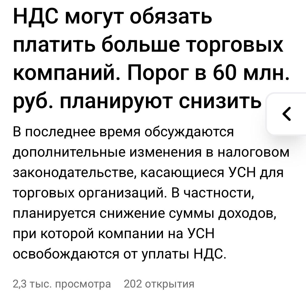 🚨НДС, здравствуйте - порог будет снижен с 60 млн до 30 млн