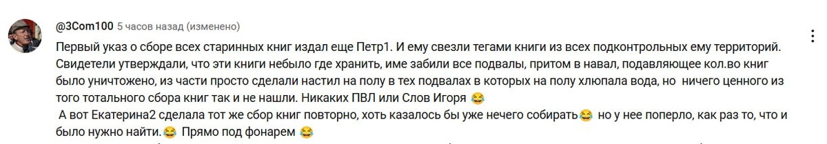 Почему фундаментальные летописи нашей истории не нашли при Петре 1, когда он приказал собрать для переписи все старинные книги? Очень хороший вопрос задали в комментариях к последнему видео! Пётр нашёл только Радзивилловскую летопись и то не у нас, а в библиотеке Кёнигсберга в Пруссии! Где Петру делают копию с этого списка. А сам список попадает к нам опять во времена правления Екатерины 2, как и остальные летописи и документы в том числе и из коллекции А. И. Мусина-Пушкина. Кто ещё не смотрел последнее видео, смотрим : https://youtu.be/05XdSyn_5hk?si=3foBvsj8frNxazOJ