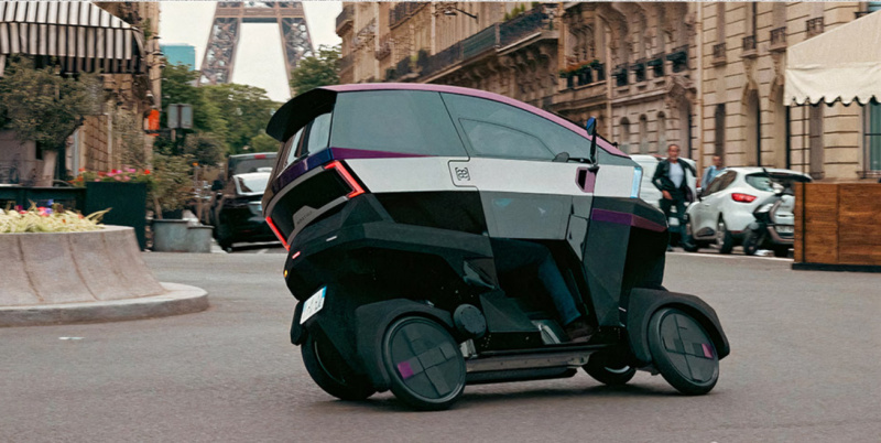 Французы создали забавный электрический гибрид байка и автомобиля, который наклоняется в поворотах всем кузовом как мотоцикл. Называется он AEmotion Dual, вот их сайт. Эта штука разгоняется до 115 км/ч и проезжает 200 км на одной зарядке.