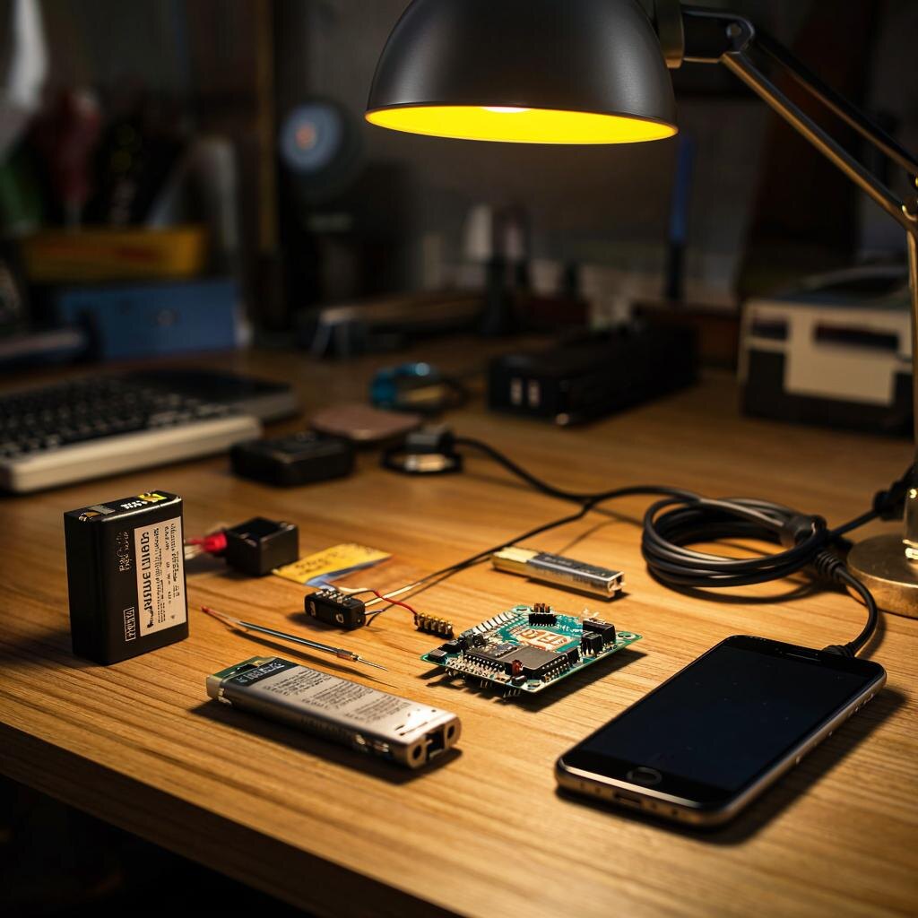 Вот список компонентов: Для начала извлекаем аккумулятор из телефона(используйте кнопочный), с него надо снять обёртку(наклейку по всем сторонам, и да это безопасно), но перед этим заранее запомните где плюс где минус, на наклейке у клем написано. После лудим пластины + и -, припаиваем модуль зарядки на проводах. Должно получится что то вроде этого: Теперь отрезаем гнездо юсб(гнездо для телефона не трогаем) на проводе для зарядки, зачищаем красный и синий провод и припаиваем соответственно к + и -. Теперь у вас есть "экстренный" power bank! Спасибо за прочтение!
