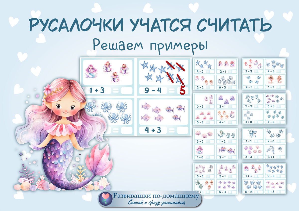 🧜♀ Русалочки учатся считать до 10 и решать примеры
