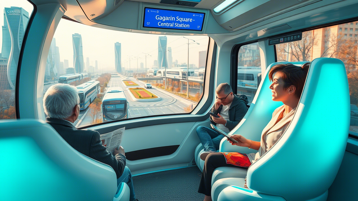 — Маршрут: площадь Гагарина — Центральный вокзал, — сообщает голос. — Время в пути: двенадцать минут. Приятной поездки.