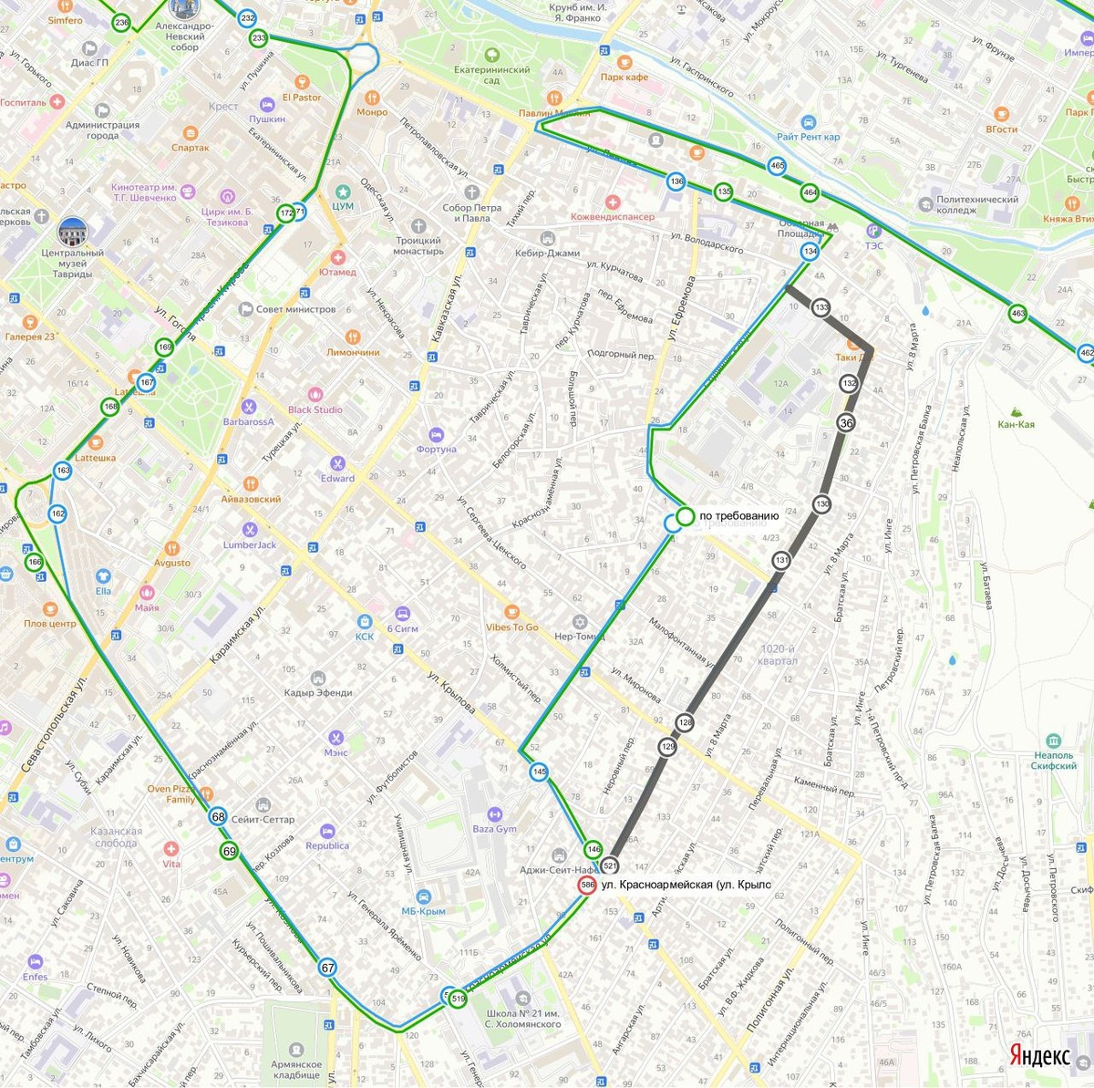 В Симферополе по улице Красноармейской на участке от ул. Чехова до ул. Крымская с сегодняшнего дня на 2 месяца вводится ограничение движения для всего транспорта, в том числе общественного, сообщили в пресс-службе администрации Симферополя. В связи с этим маршрут №12А-Б временно изменяет схему движения в обоих направлениях. Движение будет осуществляться через: ул. Студенческую → ул. Пограничников → ул. Нижнегоспитальную → ул. Крылова → ул. Красноармейскую, далее — по стандартному маршруту.