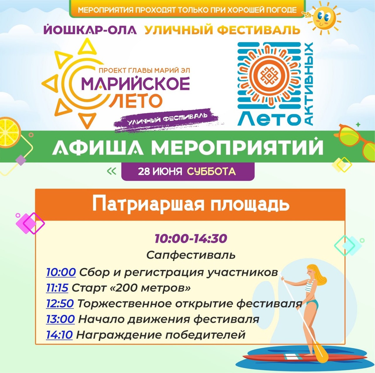 28 июня – насыщенный и праздничный день: отмечаем День молодежи и Пеледыш пайрем. Напоминаем афишу на сегодня! Фестиваль "Марийское лето" инициирован Главой Марий Эл Юрием Зайцевым.