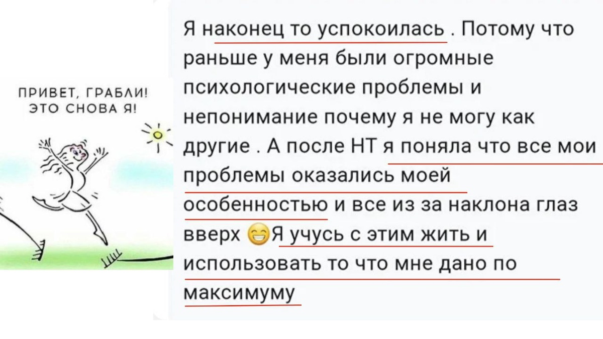 ОПЯТЬ НА ТЕ ЖЕ ГРАБЛИ! Попадаете в одни и те же неприятные моменты или что-то хронически не получается? Хочется это списать на не отработанный кармический опыт или на судьбу-злодейку. А что, если особенности характера заводят вас в такие ситуации? Нейротипология раскрывает про каждого, какие у кого "грабли" и главное – КАК ПЕРЕСТАТЬ ПО НИМ ХОДИТЬ. Какие маршруты прокладывать по жизни, чтобы кратчайшим путем играючи приходить туда, куда надо, за тем, что действительно хочется. И наконец-то перестать себя "грызть" за "ошибки" и неудачи. Понимаешь и принимаешь всего себя. Косяков становится всё меньше, потому что знаешь, куда двигаться, куда нет, как делать, как не надо именно тебе, и, что важно, с кем. Нужно для этого всего-то ИЗУЧИТЬ НЕЙРОТИПОЛОГИЮ за 2-3 месяца, и пользоваться ею всю жизнь. ЧТОБЫ ВЫБРАТЬ СВОЙ ПАКЕТ ОБУЧЕНИЯ, переходите по ссылке https://myneurotypology.com