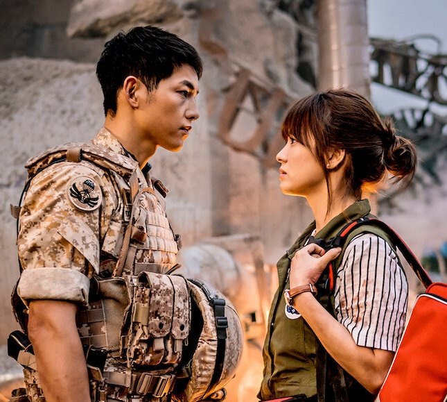 Досмотрела я южно-корейский сериал "Потомки солнца" (2016), о котором писала в предыдущей статье - про крутых спецназовцев и героических врачей, спасающих мир в разных местах планеты, в основном совершенно фантастических - думаю, примерно так американцы снимали бы про Азию, смешав в одну кучу Таиланд с Тайванем и Пакистаном. Ну да ладно. Приключений на голову главных героев немеряно: автомобильные аварии, в одной из которых машина падает с крутого обрыва в море, проход через минное поле, землетрясение, лихорадка Эбола, стычки с бандитами, ворованные алмазы - и это не считая простых драк, перестрелок и разборок с начальством. Только явления инопланетян не хватает! Главный герой постоянно проявляет самостоятельность и идет против приказов начальства: то вместе с возлюбленной-врачом под дулами пистолетов спасает от неминуемой смерти какого-то важного арабского государственного деятеля, несмотря на категорический приказ сверху не спасать, а ждать прибытия арабского врача; то он, избавивш