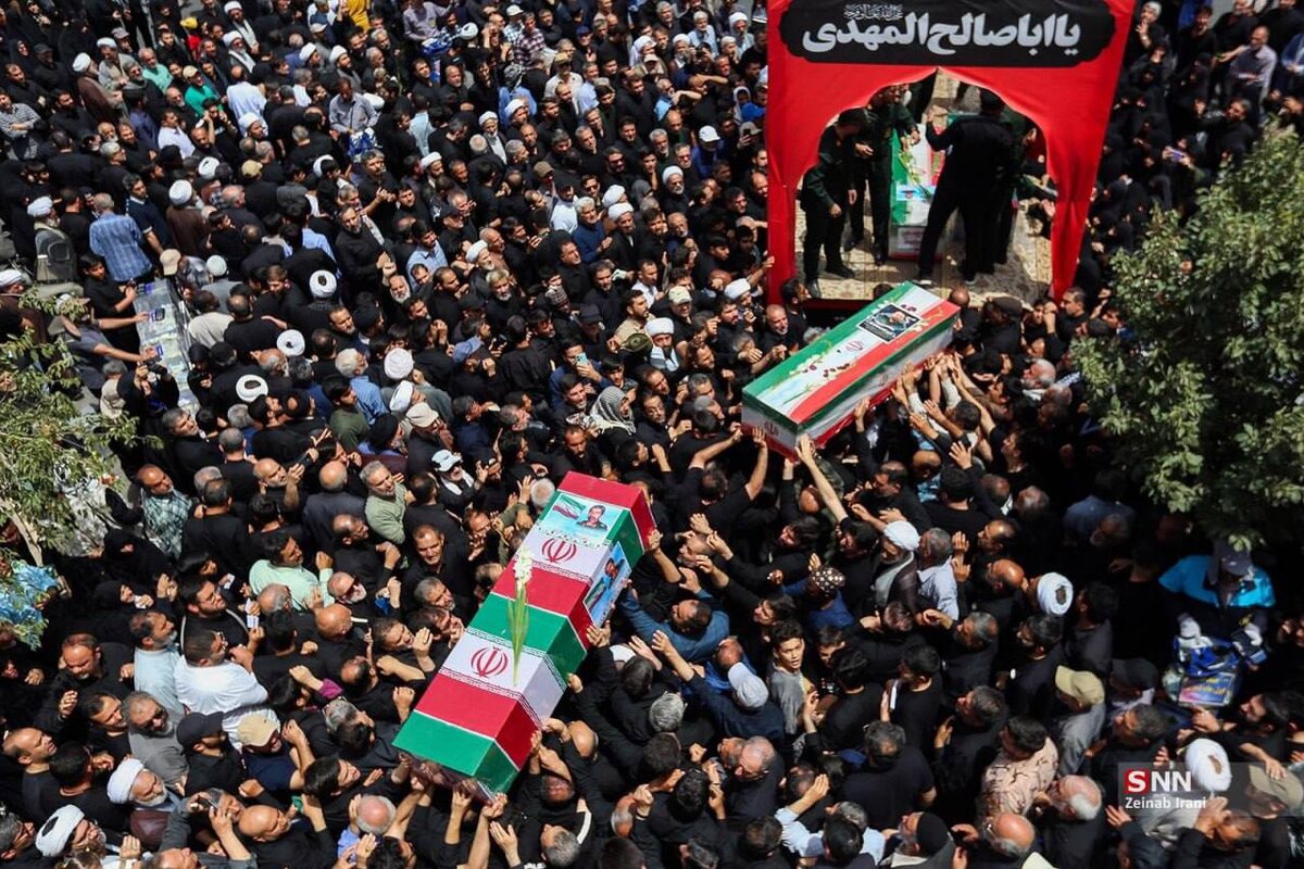 На похороны пришли президент Ирана Масуд Пезешкиан и переживший израильское покушение советник верховного лидера страны Али Шамхани. Даже с тростью он вышел почтить память погибших.