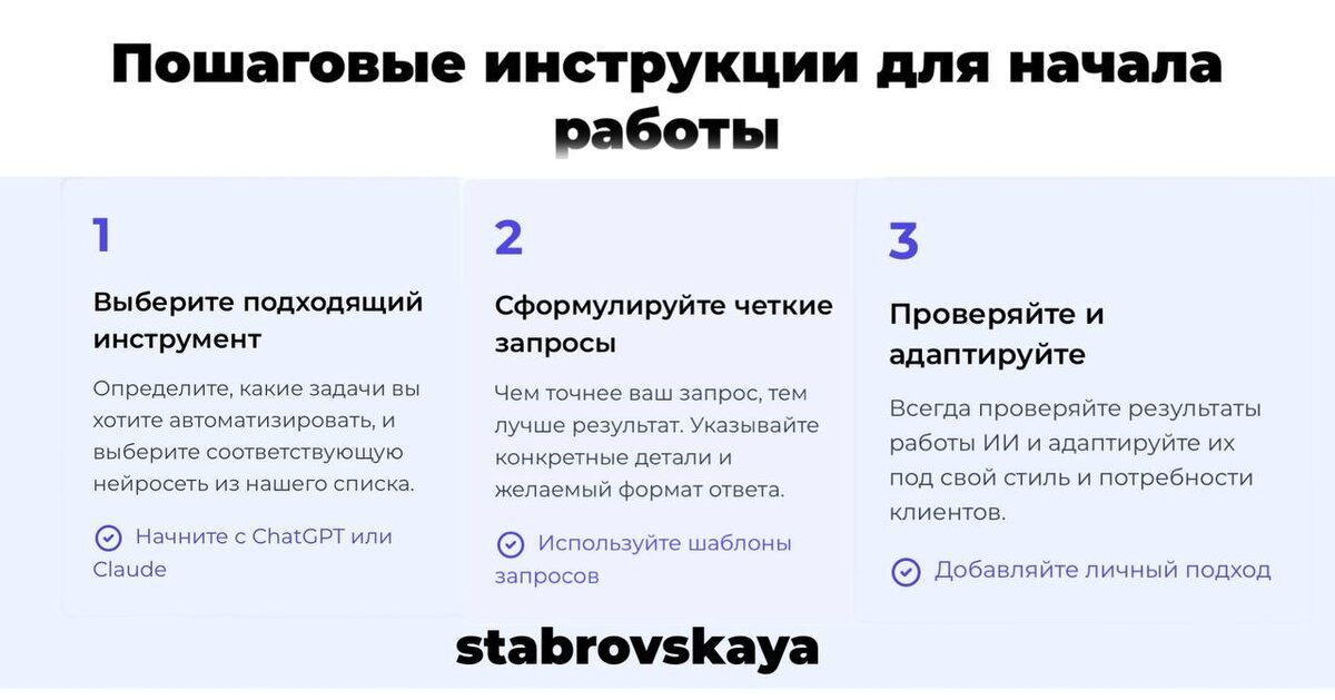 Нейросети (или по-другому — искусственный интеллект) сильно помогают в работе. Особенно риелторам. Они берут на себя скучные задачи, помогают быстрее общаться с клиентами и в итоге — больше продавать. Что именно могут делать нейросети для риелторов: 1. Экономят время Они могут автоматически: •Писать тексты про квартиры и дома •Отвечать на простые вопросы клиентов •Проверять документы на ошибки Это значит, что риелтор может сосредоточиться на самом важном — общении с людьми. 2. Помогают продавать больше Быстрые и вежливые ответы, красивые описания объектов — всё это нравится клиентам. А довольный клиент чаще покупает! 3. Анализируют рынок Нейросети умеют быстро "переварить" много информации и выдать полезные выводы: • Где сейчас лучше продавать • Что будет популярно через месяц • Какие цены реально ставить Какая нейросеть — самая полезная? ChatGPT — универсальный помощник для риелтора. С ним можно делать: • Красивые описания квартир и домов • Быстрые ответы на типовые вопросы (нап