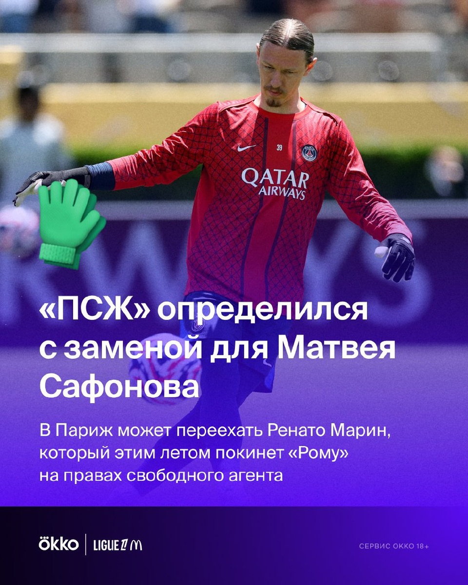 Как сообщает Goal, «ПСЖ» уже договорился о переходе нового вратаря: в Париж может переехать голкипер «Ромы» Ренато Марин, который в ближайшее время покинет римский клуб на правах свободного агента 👀