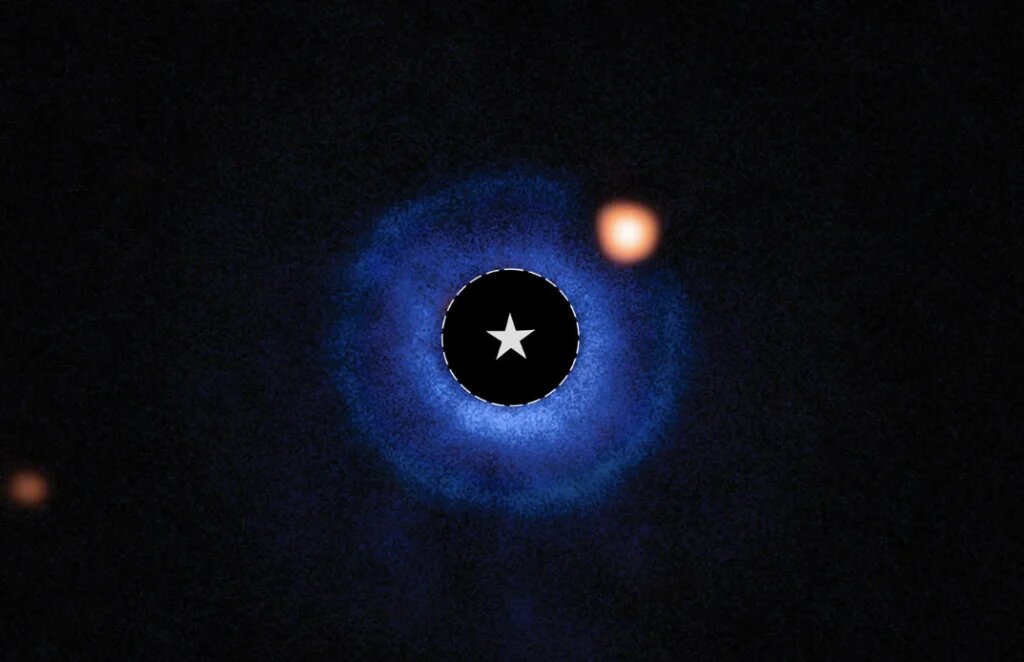 Ученые «вычли» остаточный звездный свет с помощью методов обработки изображений, вблизи звезды проявился очень слабый инфракрасный источник. Более наглядно — на схематическом изображении ниже: