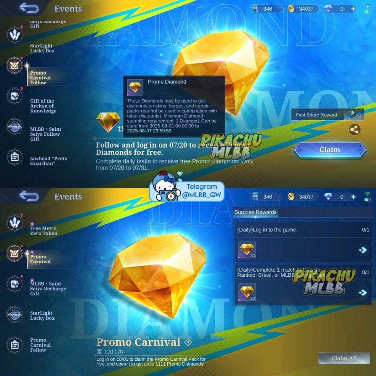 20 iyul kuni promo almazlar o'yinga qo'shiladi