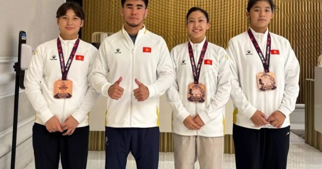 Кыргызстандын жаштар курама командасы грек-рим күрөшү боюнча Азия чемпионатында үч коло медаль утуп алды. Байге ээлери: Бактүгүл Жуманазарова (53 кг), Аяна Асамаликова (69 кг) жана Меруерт Октябрьева (73 кг). 🏆 Кыргызстандын греко-рим күрөшү боюнча жаштардан турган (U-17) командасы Азия чемпионатында үч коло медаль утуп алды. 🥉 Бактүгүл Жуманазарова 53 кг салмак категориясында коло медаль ээси болду. 🥉 Аяна Асамаликова 69 кг салмак категориясында үчүнчү орунду камсыз кылды. 🥉 Меруерт Октябрьева 73 кг салмак категориясында медаль утуп алды. 👥 Команда Нурсултан Аскарбековдун жетекчилиги астында мелдештерге катышты. 📈 Бул жетишкендик Кыргызстандын спортчуларынын эл аралык деңгээлде ийгиликтүү өнүгүп жатканын көрсөтөт.