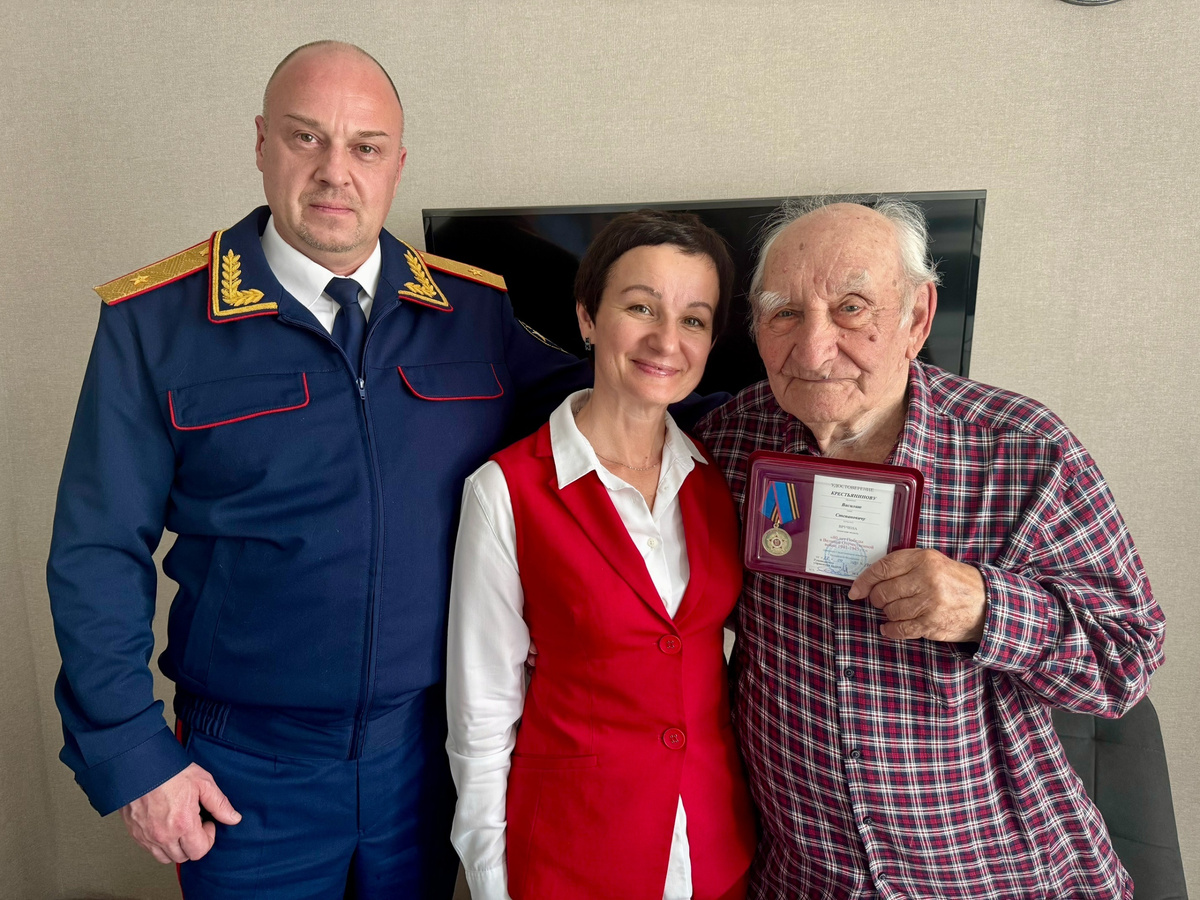 По поручению Председателя Следственного комитета Российской Федерации Александра Ивановича Бастрыкина руководитель следственного управления по Новгородской области Николай Николаевич Супрун и заместитель руководителя Андрей Константинович Степанов вручили памятную ведомственную медаль «80 лет Победы в Великой Отечественной войне 1941–1945 гг.» ветерану Великой Отечественной войны – Василию Степановичу Крестьянинову.