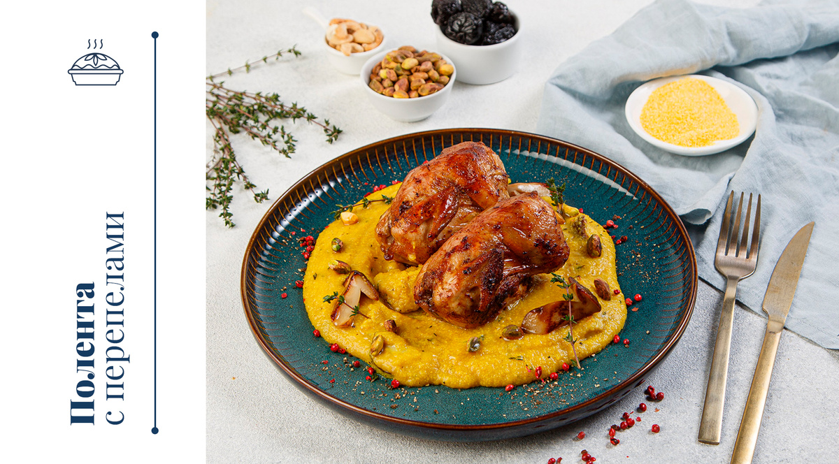 Это блюдо – настоящая находка для гурманов, сочетающая в себе простоту приготовления и изысканный вкус. Нежная, кремовая полента идеально гармонирует с сочными перепелами, пропитанными ароматом трав и специй. Позвольте себе окунуться в атмосферу итальянской гастрономии, приготовив это блюдо дома. Ингредиенты: Для поленты: 250 г кукурузной крупы для поленты (мелкого помола) 1 литр куриного или овощного бульона 50 г сливочного масла 50 г тертого пармезана (или другого твердого сыра) Соль, свежемолотый черный перец по вкусу Для перепелов: 4 тушки перепелов 2 зубчика чеснока, измельченных 2 веточки розмарина 4 веточки тимьяна 50 мл оливкового масла 200 мл сухого белого вина Соль, свежемолотый черный перец по вкусу Мука для обваливания Для подачи (опционально): Свежая петрушка, измельченная Тертый пармезан Приготовление: 1. Подготовка перепелов: Тщательно промойте перепелов под проточной водой и обсушите бумажными полотенцами. Натрите перепелов солью и перцем снаружи и внутри. Смешайте в м
