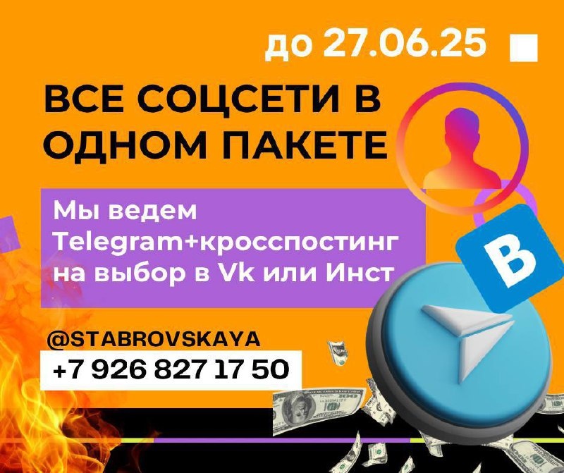 🔥СУПЕР ПРЕДЛОЖЕНИЕ «ВСЁ В ОДНОМ» Ведение Telegram + кросспостинг в VK или Нельзяграм — по цене одной площадки Telegram — это фундамент. Но большинство агентов всё ещё теряют клиентов, потому что не дублируют контент в соцсети. А ведь там сидят те, кто покупает не через логику, а через ленту. 📦 Что даём: — Полноценное ведение Telegram (контент, оформление, стратегия, воронка) — И бонусом: кросспостинг в одну из соцсетей — на выбор: ✅ VK или ✅ Нельзяграм 🎯 Для кого: — для агентов, у которых давно есть Instagram, но руки не доходят вести Telegram — для тех, кто боится «распыляться» — а мы всё делаем за вас — для тех, кто хочет быть везде, но с одной сильной командой 📍 Только до с 26-28 июня— Берём в работу 5 Telegram-каналов, с бонусным кросспостингом в VK или Instagram. Пиши в личку — пришлю условия. Кто успевает — получает максимум. Остальные — потом. По всем вопросам лично @ekaterina_stabrovskaya #риелтор #смм_в_недвижке #предложение #недвижимость