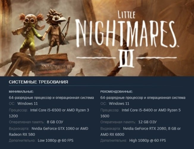 ⚙️ Технические подробности Little Nightmares III — с предзаказами появились системные требования для PC
