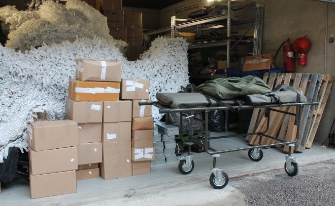 Это лекарства, расходники и тележки для перевозки раненых для 10 отдельного медицинского батальона. В начале мая губернатор Ленинградской области Александра Дрозденко посетил госпиталь 10 отдельного медицинского батальона. Воинское формирование как раз отметило год со дня основания. На той встрече глава региона пообещал, что Ленобласть продолжит поддерживать медбат. Губернатор спросил военных медиков, что сейчас в первую очередь требуется госпиталю. В итоге региональный комитет по здравоохранению и фонд «Ленинградский рубеж» собрали для батальона партию медпомощи. Врачи получат препараты, расходные материалы и тележки для перевозки раненых. Важный медицинский груз совсем скоро отправят в Курскую область.