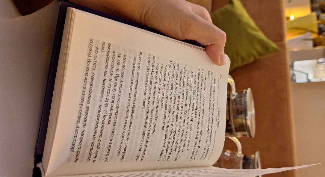 Наш стол был рядом с книжным стеллажом. И напоследок решили погадать на книгах😂 Было весело!