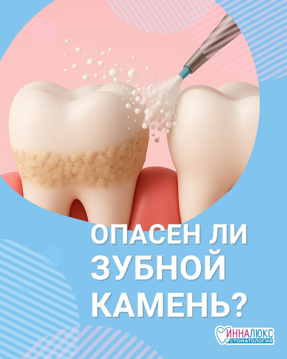 Зубной камень — это затвердевший налёт, в котором активно размножаются бактерии, и его нельзя просто удалить в домашних условиях.