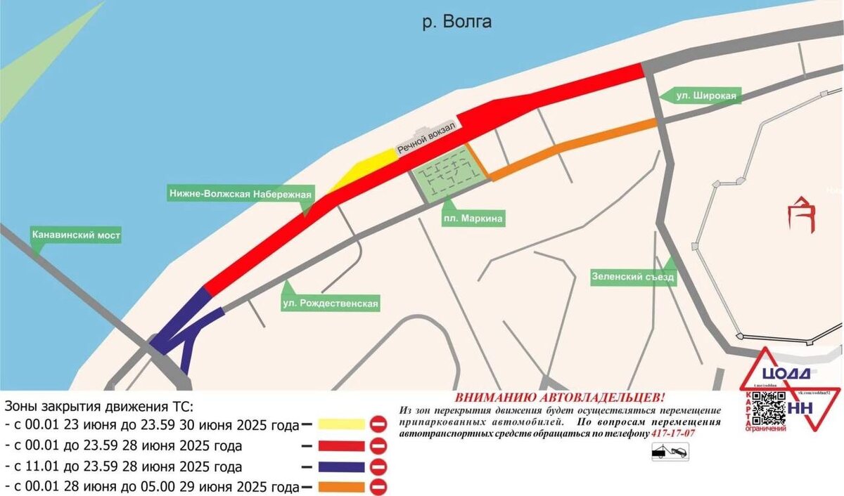 На протяжении всего дня для проезда будут закрыты площадь Маркина, участок Нижневолжской набережной от Благовещенской площади до улицы Широкой и автопарковка у Речного вокзала.