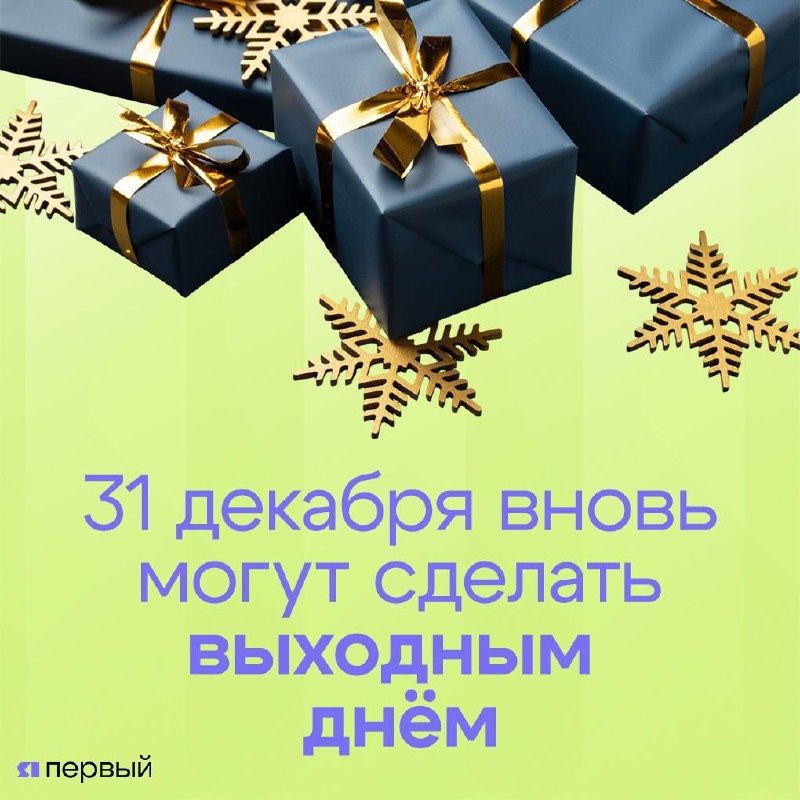 ❄️ 31 декабря вновь может стать выходным днём! Об этом заявил министр труда и социальной защиты Антон Котяков. Он рассказал про это в одном из интервью на ПМЭФ. «В 2025 году 31 декабря уже будет выходным, и мы постараемся, чтобы в 2026 году было также», — подчеркнул министр. Напомним, что в этом году новогодние каникулы начнутся 31 декабря 2025 года и продлятся до 8 января 2026-го включительно. Последний день года станет выходным за счёт переноса 5 января, которое выпадает на субботу. Получается, что жители России снова смогут подготовиться к встрече Нового года без стресса на работе и спешки. Одобряем такое решение – 🔥 💚 Подписаться | Прислать новость