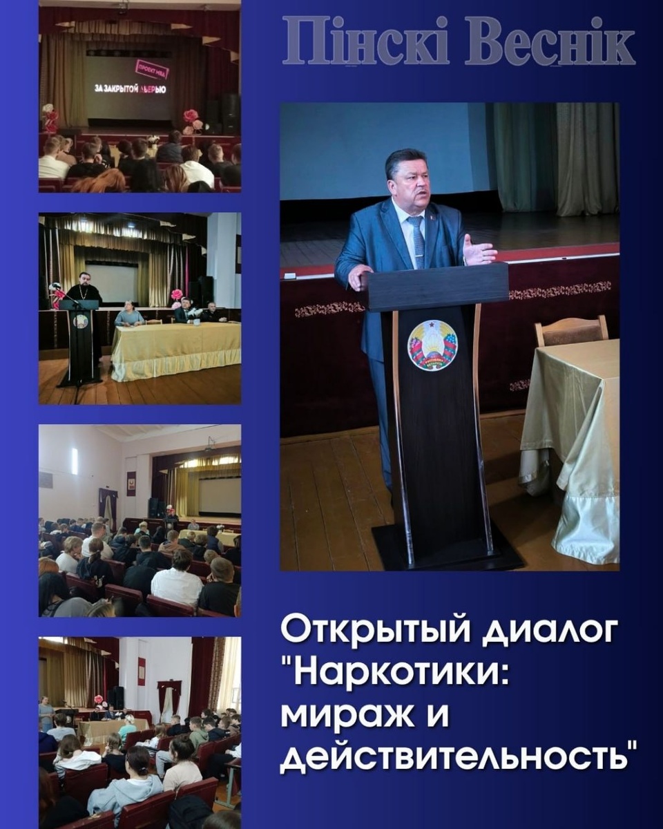 📌25 июня, накануне Международного дня борьбы с наркоманией, в Пинском государственном аграрном колледже состоялся открытый диалог "Наркотики: мираж и действительность". В нем приняли участие настоятель храма Великомученицы Параскевы Пятницы отец Константин, начальник ИДН Пинского РОВД Виталий Куневич и психолог филиала "Межрайонный наркологический диспансер" Евгения Кохнович. ✔️В завершение мероприятия учащимся продемонстрировали тематические видеоролики. 📍📍@Пинский Вестник ЮТУБ | САЙТ| ИНСТ | ВК | ОК | ФЕ | Прислать новость